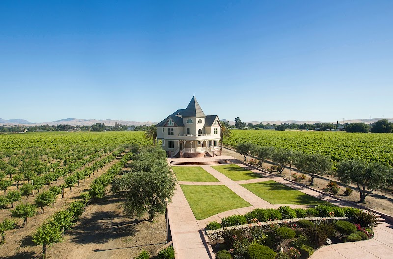 The namesake wineryβs airy, elegant tasting room, plus seating on a front patio & garden courtyard.